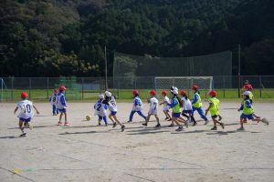 サッカー教室では、楽しい準備運動からスタートし、ボールを使った遊び、試合形式のミニゲームを実施しました。